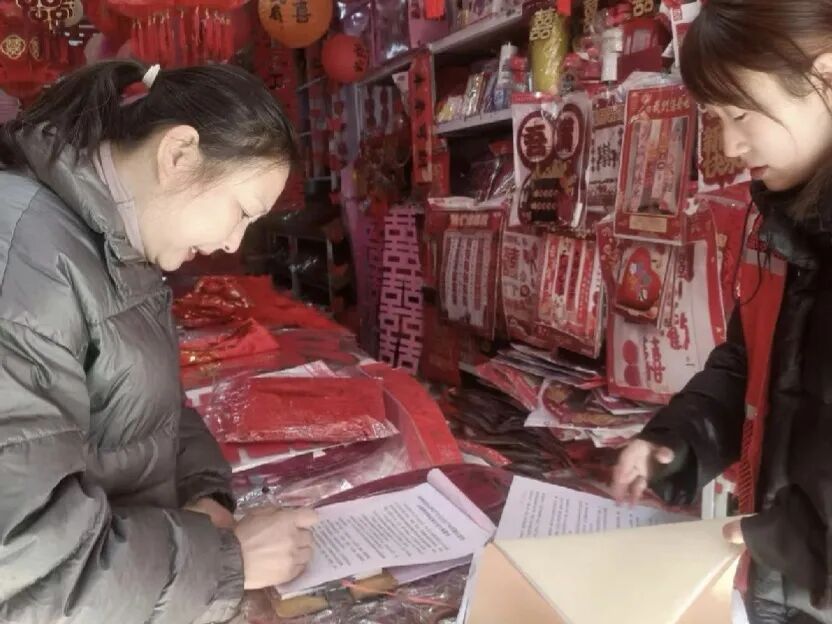 园艺与植物保护学院王珍在新华社区帮助社区工作人员进行严禁燃放烟花爆竹宣传